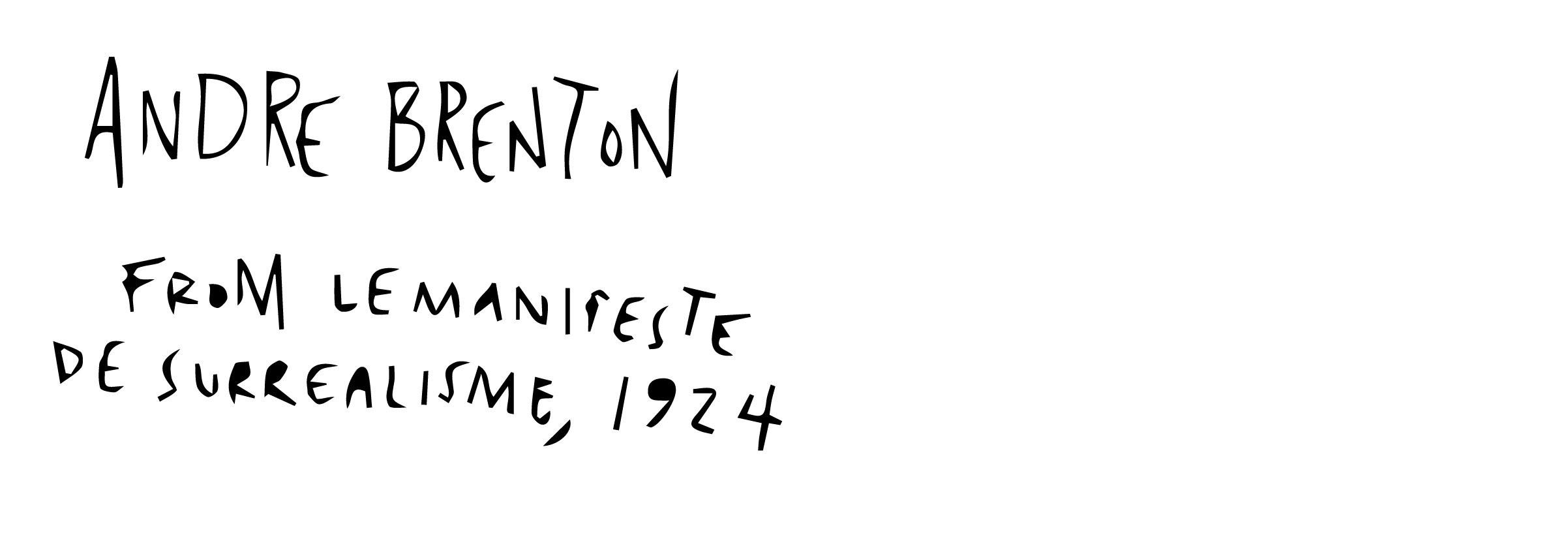 One night, before falling asleep, I became aware of a most bizarre sentence, clearly articulated to the point where it was impossible to change a word of it, but still separate from the sound of any voice. It came to me bearing no trace of the events with which I was involved at that time, at least to my conscious knowledge. It seemed to me a highly insistent sentence - a sentence, I might say, which knocked at the window. I quickly took note of it and was prepared to disregard it when something about its whole character held me back. The sentence truly astounded me. Unfortunately I still cannot remember the exact words to this day, but it was something like: 'A man is cut in half by the window'; but it can only suffer from ambiguity, accompanied as it was by the feeble visual representation of a walking man cut in half by a window perpendicular to the axis of his body. ^ It was probably a simple mat- ter of a man leaning on the window and then straightening up. But the window followed the movements of the man, and I realized that I was dealing with a very rare type of image. Immediately I had the idea of incorporating it into my poetic material, but no sooner had I invested it with poetic form than it went on to give way to a scarcely intermittent succession of sentences which surprised me no less than the first and gave me the impression of such a free gift that the control which I had had over myself up to that point seemed illusory and I no longer thought of anything but how to put an end to the interminable quarrel which was taking place within me.(3)